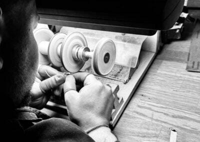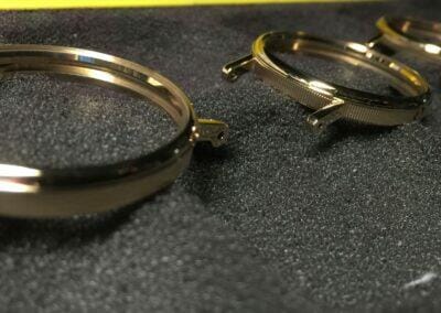 Notre atelier est équipé de plusieurs tourets spécialisés dans l’anglage. Nous vous offrons un service d’anglage haut de gamme pour toutes vos pièces horlogères, joaillères et médicales. Grâce à notre expérience et à notre équipement de pointe, nous sommes en mesure de réaliser des finitions angulaires impeccables qui rehaussent la qualité et l’esthétique de vos composants.